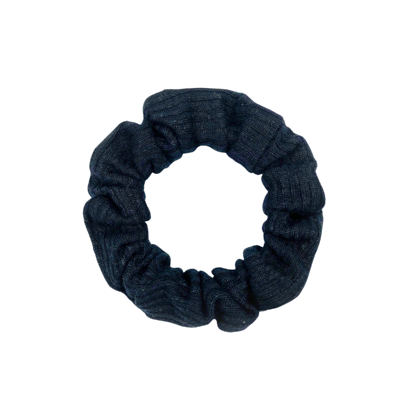 French Ribbed Black Scrunchie - Thin